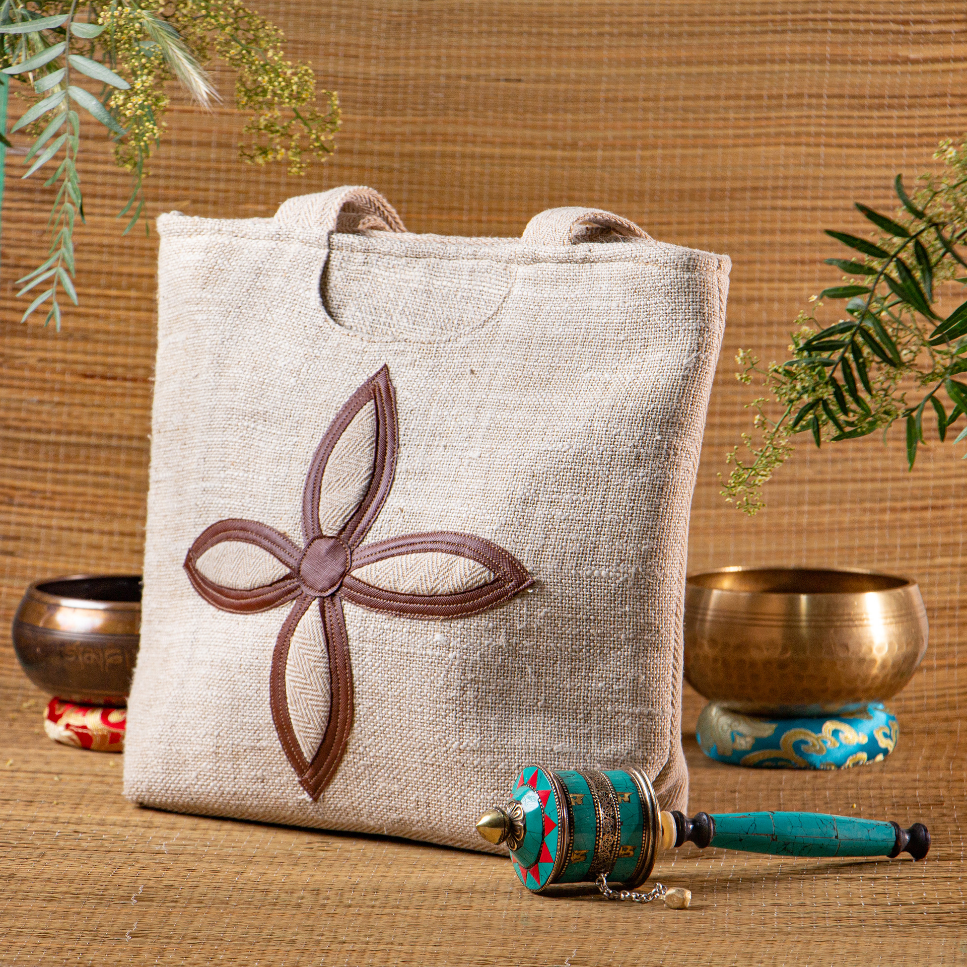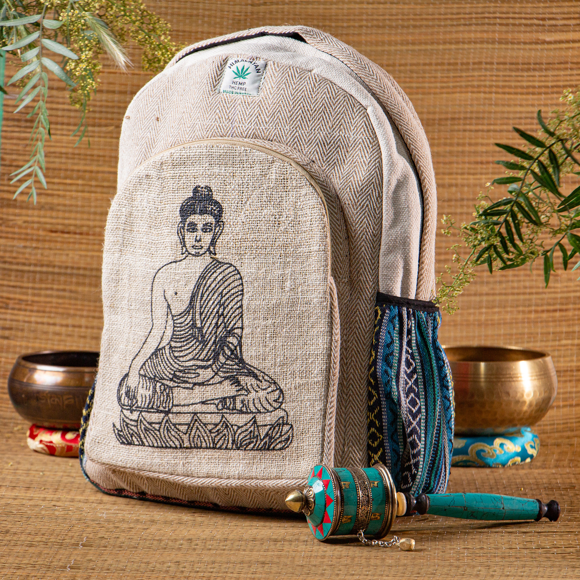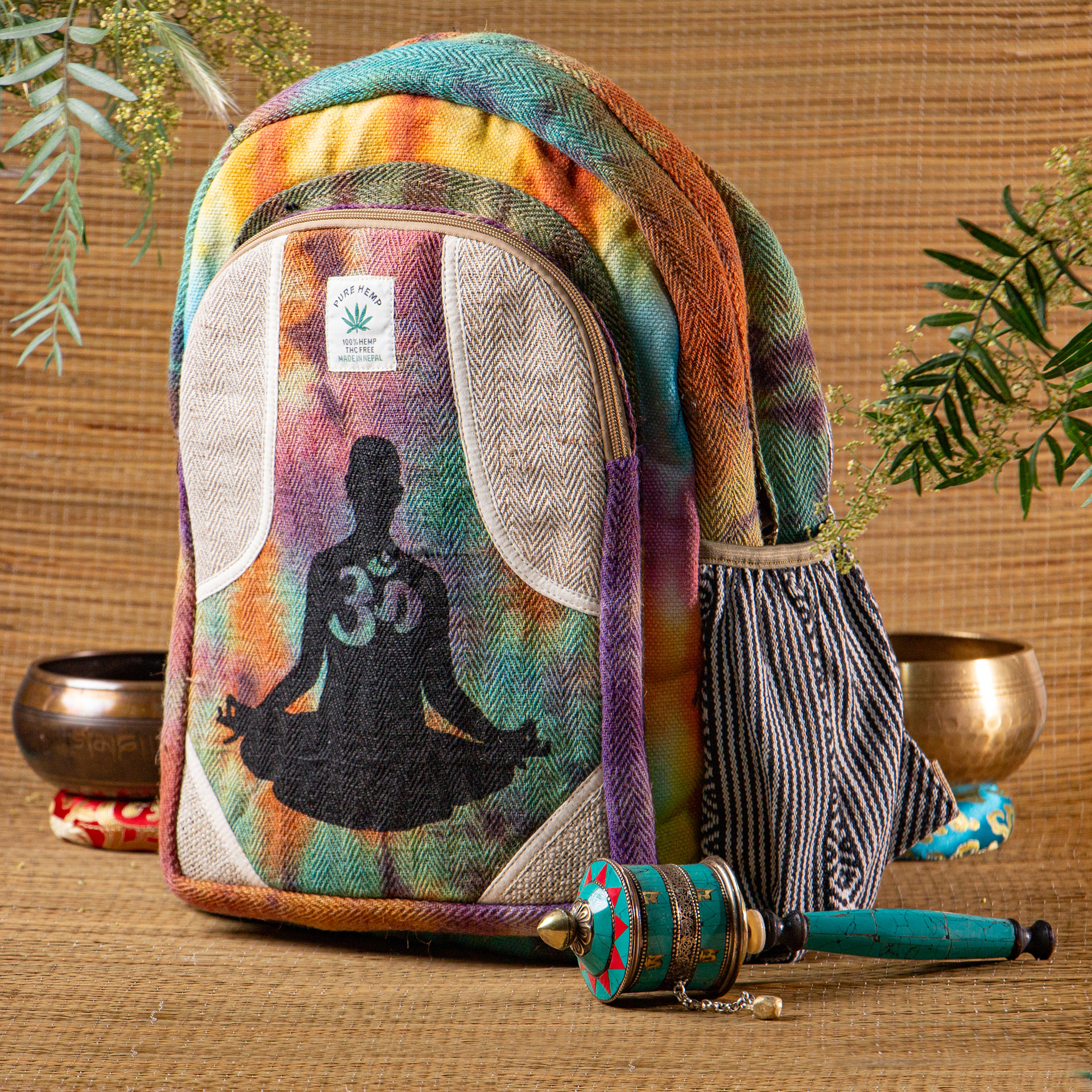 Sesión de fotos a mochilas y bolsos hechos a mano en Nepal de cáñamo 100% natural para